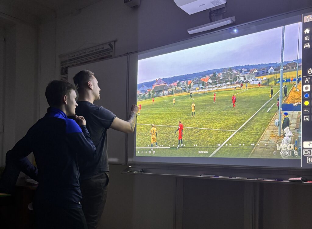 Stěžerští muži usedli v posledním tréninku před odjezdem na soustředění do školních lavic. Důvod? Videoanalýza trenéra Honzy Novotného. Elektronická tužka
